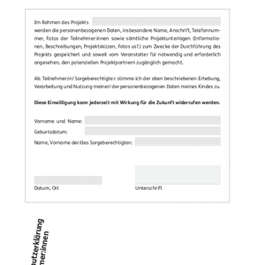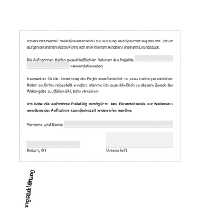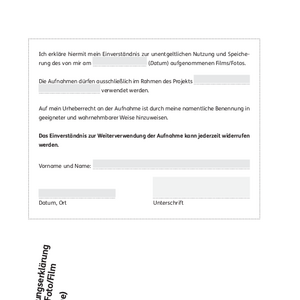 Einwilligungserklärung Nutzung Foto/Film (Aufnahme)