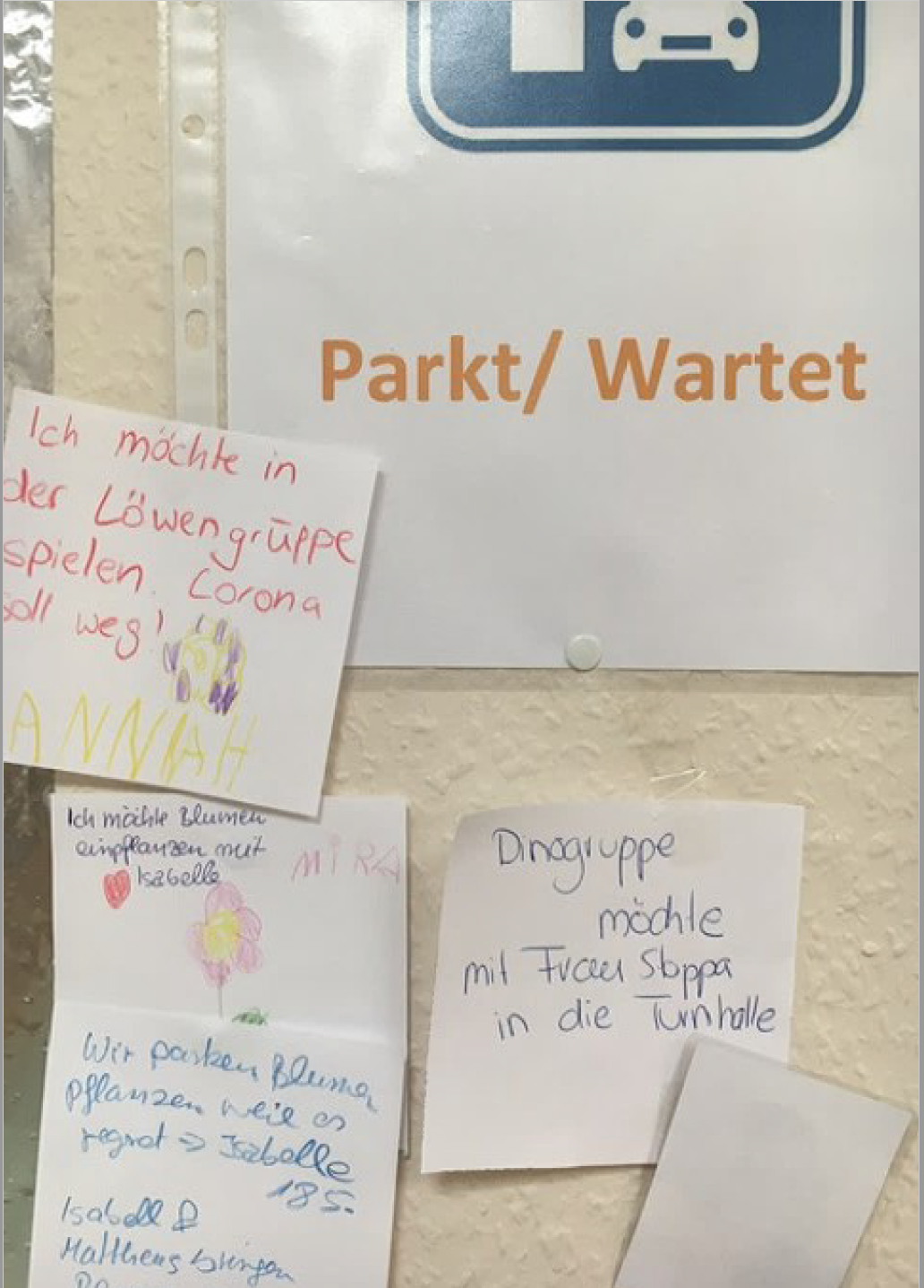 Die Mitarbeiter:innen des katholischen Kindergartens Sankt Paulus in Kamp-Lintfort führen die Kinder an die Kanban-Methode heran. Ursprünglich war das Kanban eine Methode zur Teambesprechung, um gemeinsam kreative Lösungen zu finden und Flexibilität zu schaffen. Diese wurde für die Kinder angepasst. Auch die Kleinsten werden dadurch in demokratische Entscheidungsprozesse aktiv eingebunden. Auf dieser Grundlage ist das Projekt „Partizipation – ein Kinderspiel?!“ entstanden. Es gibt ein Board, an dem die Kinder ihre Wünsche und Ideen anheften können, indem sie dazu ein Bild malen und die Mitarbeiter:innen dieses beschriften. Die Vorschläge durchlaufen dann vier Phasen – dabei rutschen die jeweiligen Zettel auf dem Board in die nächste Spalte: „In Bearbeitung“ - hier werden Vorbereitungen getroffen. Bei der „Rücksprache“ werden Ressourcen angeschafft und der Zeitpunkt zur Umsetzung bestimmt. Bei „Parkt/Wartet“ finden sich Ideen, welche geplant, aber aktuell nicht durchführbar sind. In „Erledigt“ werden schließlich alle durchgeführten Ideen und Wünsche aufgelistet. Am Ende sprechen die Erzieher:innen mit dem jeweiligen Kind über den Prozess. Durch das Kanban werden beispielsweise die Raumplanung und -gestaltung verändert, die Essenszeiten flexibler gestaltet (damit die Kinder mit ihren Freund:innen gemeinsam essen können), im Flur eine Straße mit Verkehrsschildern errichtet oder Wünsche erfüllt wie „Ich möchte mit Erzieher:in xy Kekse backen“. Dieser Selbstbestimmungsprozess soll dauerhaft in die pädagogische Arbeit eingebunden werden.
